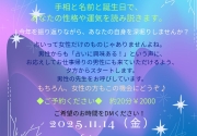 ◆「Night palm reading CLUB」11/14(金)16:00~◆ 11/14(金)夕方から「手相+名前+誕生日」で占う杉本先生に来ていただきます!男性からの「占い、興味あるーー!」でも、なかなか機会がなくて・・という声をいただき、男性の先生に来ていただきます!お仕事帰りに来ていただ・・・