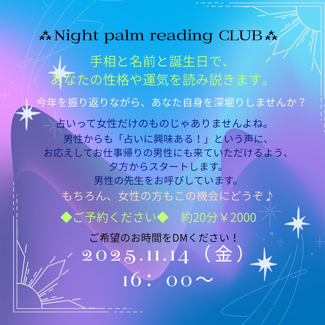 ◆「Night palm reading CLUB」11/14(金)16:00~◆